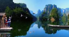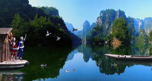 上午:游覽如仙境一般的“人間瑤池”——【寶峰湖景區(qū)】(含門票+景區(qū)環(huán)保車+游船),寶峰湖長2.5公里,位于索溪鎮(zhèn)正南2公里。以其秀麗的湖光水色與幽野的洞天情趣成為武陵源水景風光的代表之作,電視劇《西游記》中花果山水簾洞外景就拍攝于“奇峰飛瀑”。清澈無比的湖泊倒映群山,水因山而綠,山得水更青。寶峰湖已開發(fā)的景點以高峽平湖、鷹窩古寨、絕壁飛瀑、一線天峽谷等最為叫絕。蕩舟湖上,登玲瓏翠綠的湖心島,恍若置身畫中。