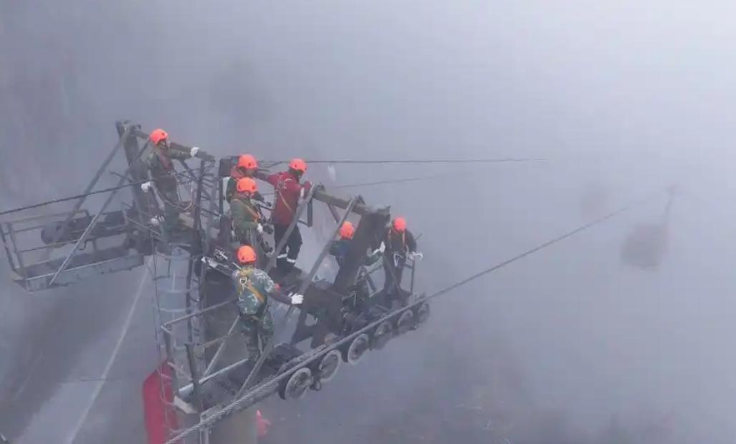 天門山索道作為景區(qū)重要的交通線,不僅長度位居世界前列,安全設(shè)備也是位居世界前列。天門山景區(qū)每年都會組織相關(guān)工作人員熟悉救援流程,增強(qiáng)工作人員在突發(fā)事件中的處置應(yīng)變能力和熟悉掌握急救的常規(guī)程序和方法。此次演習(xí)在大霧中進(jìn)行,進(jìn)一步檢驗(yàn)了救援隊伍在惡劣天氣條件下的應(yīng)急能力,確保了游客的安全。