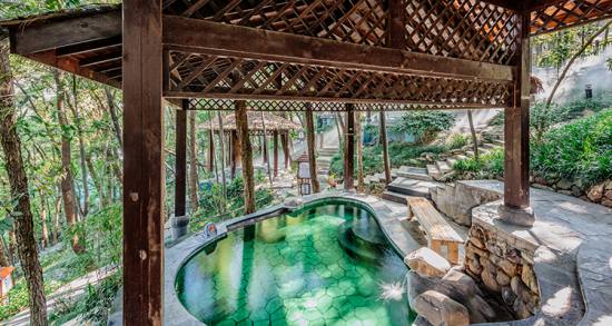 萬福溫泉屬天然自涌溫泉,清澈碧透,常年恒溫53℃,富含偏硅酸、氡等多種有益人體健康的天然礦物質(zhì),既可直接飲用,又有醫(yī)療保健作用,據(jù)權(quán)威機(jī)構(gòu)檢測,萬福溫泉是中國最大的氡溫泉資源。