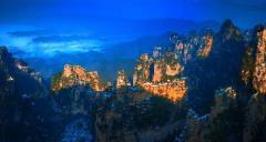 有景點110處,既有造型獨特的山峰與危崖,又有流翠滾玉一般溪流與飛瀑:既有以前窩藏土匪的“歪嘴巖”,又有奇絕難攀的“鬼愁寨”:還有“馬蹄巖”、“猿愁攀”、“天波府”、“姐妹灣”等許多奇景,真是寫不盡,看不完。這里還要特別提到“宗保峰”、“六郎峰”、“佘太君”、“楊家界”,這些名字是什么意思?原來這楊家界的一些山名,都是楊家將子孫后代為紀念楊家將而取的地名,一千多年來,一直沿襲未改,所以來楊家界游覽,不僅可以飽覽這里的原始風(fēng)光,同時還可以替楊家尋祖問根,繼承并發(fā)揚愛國忠良的遺風(fēng)。