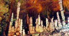 黃龍洞以其高闊的洞天、幽深的暗河、密集的石筍而出名。洞中眾多的石乳、石柱等各種鐘乳石,在燈光的照耀下,多姿多彩。特別是標(biāo)志性景點(diǎn)“定海神針”,高達(dá)20米的鐘乳石柱,細(xì)處直徑只有10厘米。