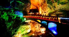 黃龍洞是張家界武陵源風(fēng)景名勝中著名的溶洞景點(diǎn),因享有“世界溶洞奇觀”“世界溶洞全能冠軍”“中國(guó)最美旅游溶洞”等頂級(jí)榮譽(yù)而名震全球。現(xiàn)已探明洞底總面積10萬(wàn)平方米;洞體共分四層,洞中有洞、洞中有山、山中有洞、洞中有河。經(jīng)中外地質(zhì)專(zhuān)家考察認(rèn)為:黃龍洞規(guī)模之大、內(nèi)容之全、景色之美,包含了溶洞學(xué)的所有內(nèi)容。黃龍洞以其龐大的立體結(jié)構(gòu)洞穴空間、豐富的溶洞景觀、水陸兼?zhèn)涞挠斡[觀光線(xiàn)路獨(dú)步天下。