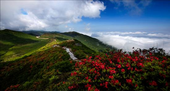 初春,大圍山萬(wàn)物復(fù)蘇,滿山翠綠、繁花似錦,可觀千畝櫻花、賞萬(wàn)畝杜鵑,游十里桃花,聞鳥(niǎo)語(yǔ)花香,聽(tīng)流水歡歌。盛夏,大圍山空氣清新,氣候宜人,這里年平均氣溫僅16.8°,是您感受激情漂流,品嘗甜美水果和休閑避暑勝地。金秋,佇立七星頂峰,極目遠(yuǎn)眺,群山莽莽、層林盡染,晨觀日出,晚賞落霞,高山壯麗景色盡收眼底,使人心曠神怡,豪情滿懷。嚴(yán)冬,大圍山漫山玉樹(shù)瓊枝、銀妝素裹,霧淞冰掛,美不勝收,使人恍若進(jìn)入到童話般的世界。