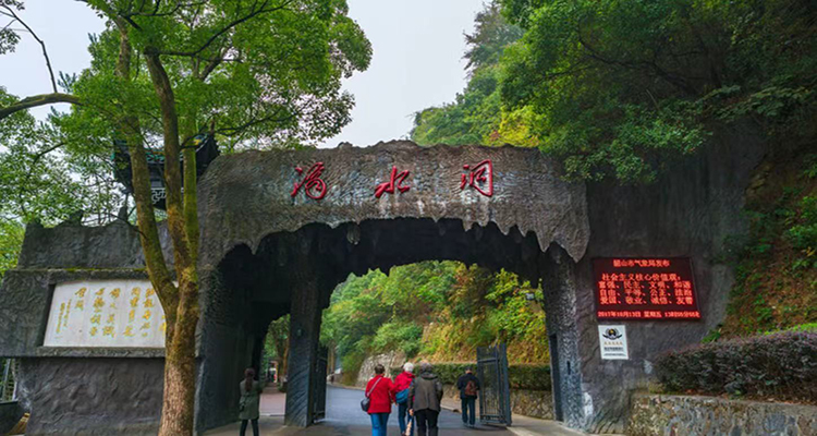 滴水洞長(zhǎng)約2.8公里,洞內(nèi)有小溪,曲曲彎彎,幽壑口朝東北而開(kāi)。小溪沿岸林木繁茂,挺拔的松林中夾雜著茂密的楠竹,而上百種野花漫山遍野地生長(zhǎng)著。這里的珍貴林木有銀杏、女貞、鐵樹(shù)等30多種,這里的花卉有映山紅、臘梅、芙蓉、月季、菊花等上百種,這里的珍貴藥材有金銀花、甘草、沉香、白果等20余種,境幽景優(yōu)是滴水洞幽壑的一大特點(diǎn),人在景中如置身仙境。滴水洞正式對(duì)外開(kāi)放,并陸續(xù)修造了許多旅游景點(diǎn)與設(shè)施。滴水洞門樓,依山造勢(shì),頂部垂著深灰色的石鐘乳,中覆著紫藤、絡(luò)石、烏蘿,古趣盎然,上題“滴水洞天”4個(gè)朱紅大字。門樓建在水濱崖邊,韶山水庫(kù)波光粼粼,巖邊松柏勁拔,給游人以先聲奪人之感;加上守衛(wèi)者仍保留全副武裝,仿佛毛澤東仍在洞中安歇。進(jìn)得門樓,臨水一亭翼然,倚欄俯仰,只見(jiàn)山風(fēng)拂面;又見(jiàn)游道右側(cè)山巖石壁上,倏然從松樹(shù)間躍出靈氣飛動(dòng)的“滴水洞”3字,正是毛澤東的手跡。道邊的黑色山體上,嵌著一塊塊名人留言的青石碑。漫步滴水洞游道,仿如置身詩(shī)情畫(huà)意中,松與竹,青蔥得癢人心肺,山花、野鳥(niǎo)、人面、歌聲,使人陶醉。
